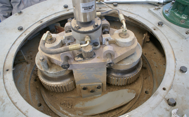 鋸末香蕉视频毛片由電機帶動傳動,采用電機直連方式,電機通過齒式聯軸器與減速機軸連接,經過減速機內錐齒和盤齒90°變向,B3係列臥式普通電機帶動減速機內花鍵套和軸承室內空心主軸轉動,空心主軸帶動壓輪碾壓模具的內表麵完成壓製過程。
